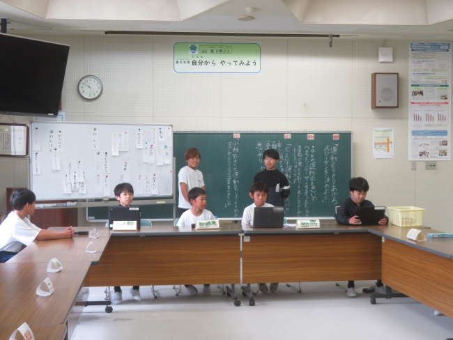 代表委員会 2025/04/25 運動会に向けて代表委員会でスローガンについて話し合いが行われました。 各学級で話し合ったスローガンに入れたい言葉や意見が発表されました。 運営委員会の5・6年生がはきはきとした声で会を進め、参加した子供たちもたくさん意見を出していました。 このあと、全校児童にアンケートを行いスローガンが決まっていきます。 本番に向けて、みんなの心が一つになるスローガンが決まるのが楽しみです。