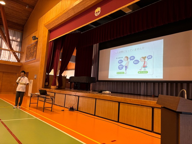 高齢者支援課の理学療法士さんを講師に「元気なからだをつくる運動習慣」をテーマに学校保健委員会が行われました。