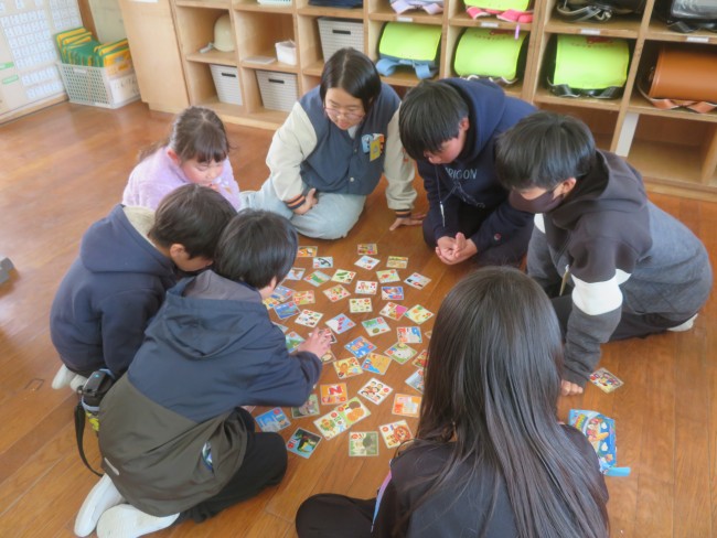 Ⅰ年6年ペアは、かるた遊びを楽しんでいました。