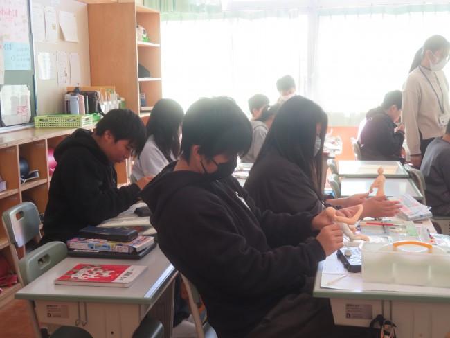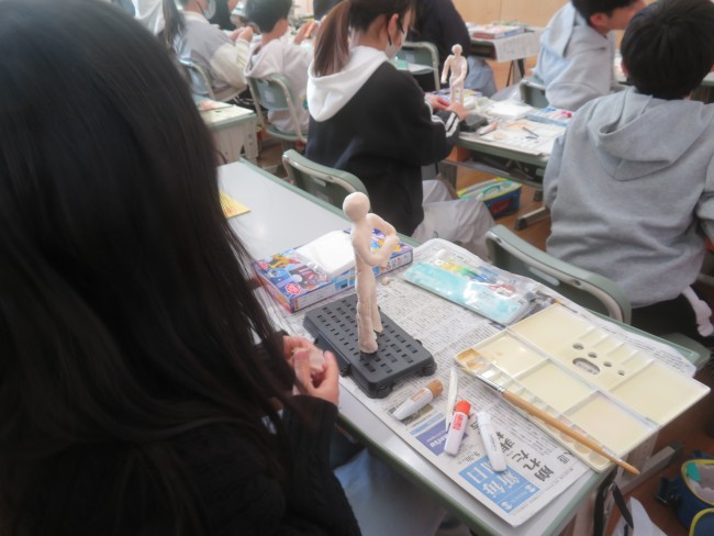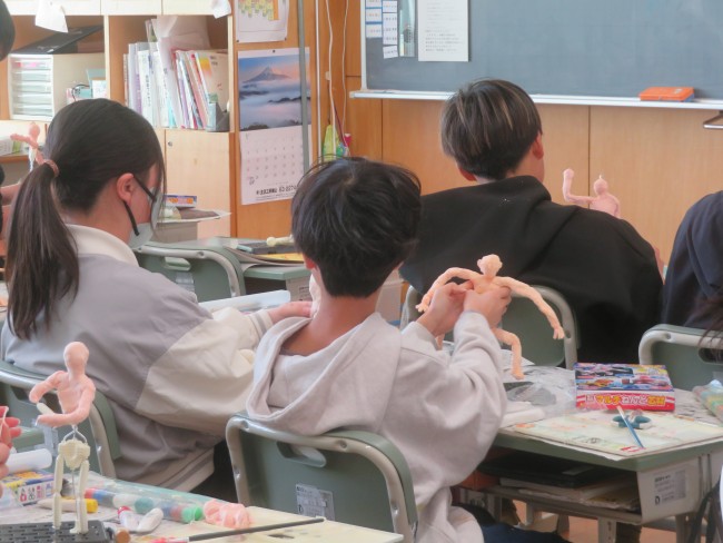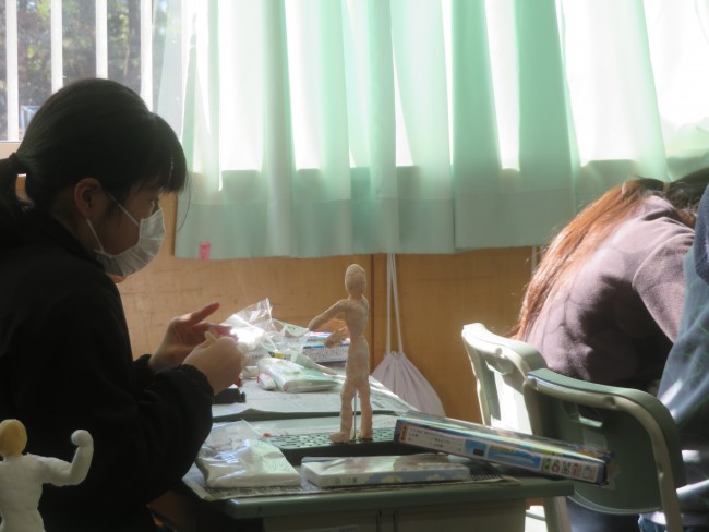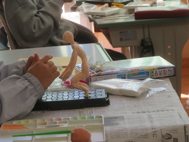 6年生が図工の学習で将来の自分の姿を紙粘土と芯材を使って作っています。