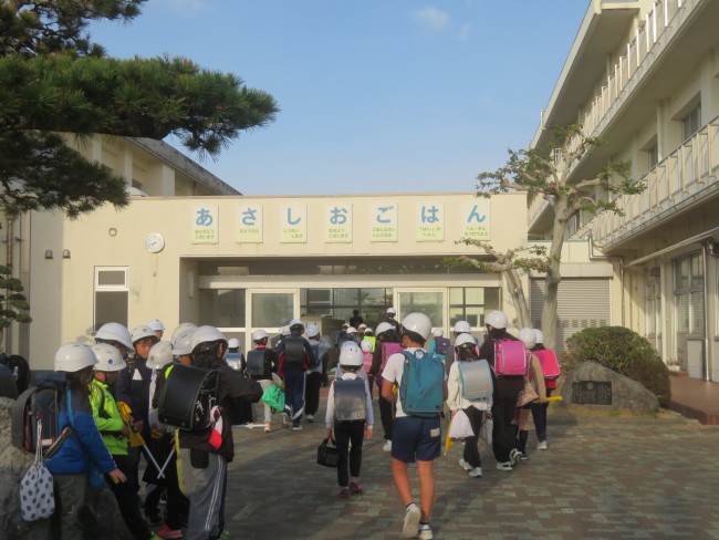 新しいリーダー 2026/03/02 2月の終わりから登校班のリーダーが新しくなって今の6年生が見守りをしながら登校しています。 登校時間も5分遅くなりましたが、子供たちは時間を守ってしっかり登校しています。