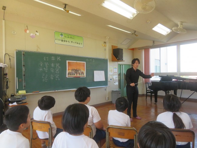 音楽鑑賞会ワークショップ 2025/09/30 11月20日に行われる音楽鑑賞会に向けて、富士山交響楽団のみなさんをお迎えして3.4年生を対象にワークショップを行いました。 オーケストラの楽器の編成や100年以上も前から親しまれているクラシック音楽が子供たちの身近にあることをわかりやすくお話してくださいました。 本公演がますます楽しみになりました。