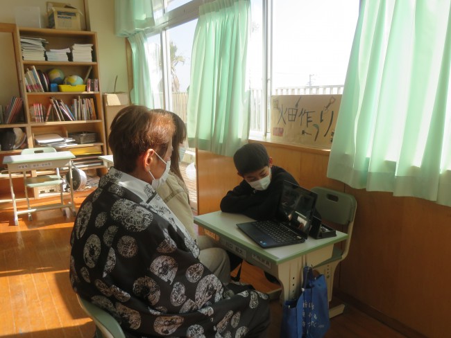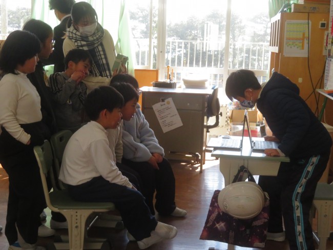 保護者の皆さんや34年生に向けて、クロムブックを使って自分たちの学習の成果を上手に発表していました。
