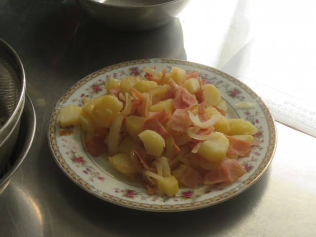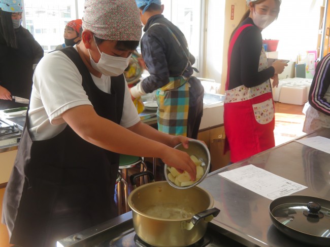 6年生調理実習 2025/12/19 6年生が家庭科の授業で調理実習を行いました。 自分たちで作る献立を考えて、作業を分担しながら挑戦しました。 ジャガイモやホウレンソウを切ったり茹でたり炒めたり出来上がりにも満足そうでした。